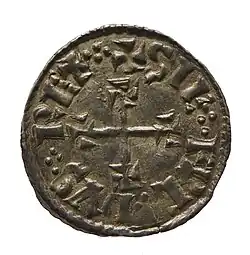 Siefredus of Northumbria replaced Guthred as ruler of Jórvík and although not a great deal is known about him there has been some information provided by coin evidence. A substantial find in the Ribble Valley, during the 19th century, now known as the Cuerdale Hoard, contained approximately 8,000 Anglo-Scandinavian coins as well as continental and Kufic coins.[f] Some of the coins discovered have Siefredus's name on providing an indication to when he reigned. The coin evidence suggests that Siefredus succeeded Guthred and ruled from about 895 until 900.[24][25]