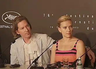 Johansson returned to the screen with Wes Anderson's comedy Asteroid City (2023), in which she led an ensemble cast. It was her second film to premiere at the Cannes Film Festival after Match Point (2005).[190][104] For her two months of work on the film, she took a substantial pay cut, earning $4,131 a week.[104] Describing her collaboration with Anderson, she said, "I like the sort of constraints of Wes' precision. I think in some ways, it's more liberating."[104] Anthony Lane of The New Yorker praised Johansson's ability to add depth to her character and for skillfully portraying both reality and imagination with wit.[191] In Kristin Scott Thomas's directorial debut My Mother's Wedding, Johansson played one of three sisters reuniting for their mother's wedding.[192] The Guardian's Benjamin Lee was displeased by the film and Johansson's "awkward British accent".[193]
