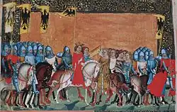 Later supported Count Henry of Schweinfurt (called: Hezilo) the East Frankish Henry II (1002–1024, from 1014 Roman-German Emperor) in the royal election of 1002 and was awarded the Duke dignity of Bavarians. After the election, however, Henry II did not fulfill the promise. Thereupon it came to the Schweinfurt Feud in 1003.[7] Count Heinrich lost all his possessions. The confiscated royal goods formed the core of the new bishopric of Bamberg. Hezilo, however, retained his possessions around the castle hill Peterstirn. The family, in which Judith of Schweinfurt became a central figure in the history of the old Schweinfurt city, died in the male line of 1057 and at the latest this year marks the undisputed end of the important role of the Margraves of Schweinfurt.