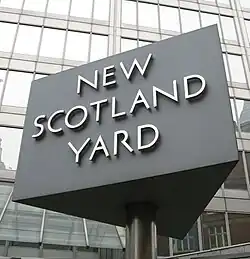 ![]() The iconic sign outside the New Scotland Yard came to prominence when it was first located outside an earlier Scotland Yard building. | |