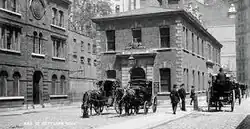 By 1887, the Metropolitan Police headquarters had expanded from 4 Whitehall Place into several neighbouring addresses, including 3, 5, 21 and 22 Whitehall Place and several stables, including one at 7 Great Scotland Yard still in use by the mounted branch.[1] These also included buildings which fronted onto the north side of Great Scotland Yard, with the address of 8 and 9 Great Scotland Yard, sometimes shown on maps as a station or "police office" on A Division but actually used from 1842 as the central headquarters of the new Detective Branch.[9] Those buildings were damaged in an 1884 Fenian bomb attack and are now lost under the former Central London Recruiting Office, which was acquired by hypermarkets operator Lulu Group International in 2015 and reopened as a Hyatt luxury hotel four years later.[10][11]
