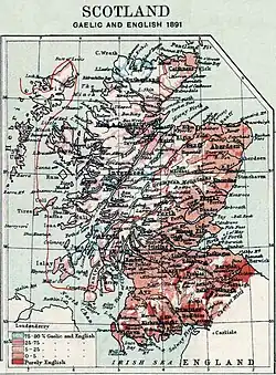 1891 distribution of English (including Scots) and Gaelic in Scotland