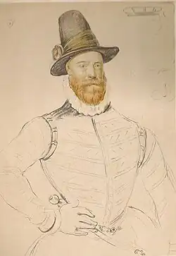 More formal plays included those of James Wedderburn, who wrote anti-Catholic tragedies and comedies in Scots around 1540, before he was forced to flee into exile. These included the Beheading of Johne the Baptist and the Historie of Dyonisius the Tyraonne, which were performed at Dundee.[85]David Lyndsay (c. 1486 –1555), diplomat and the head of the Lyon Court, was a prolific poet and dramatist. He produced an interlude at Linlithgow Palace for the king and queen thought to be a version of his play The Thrie Estaitis in 1540, which satirised the corruption of church and state, and which is the only complete play to survive from before the Reformation.[86] George Buchanan (1506–1582) was major influence on Continental theatre with plays such as Jepheths and Baptistes, which influenced Pierre Corneille and Jean Racine and through them the neo-classical tradition in French drama, but his impact in Scotland was limited by his choice of Latin as a medium.[87] The anonymous The Maner of the Cyring of ane Play (before 1568)[88] and Philotus (published in London in 1603), are isolated examples of surviving plays. The later is a vernacular Scots comedy of errors, probably designed for court performance for Mary, Queen of Scots or James VI.[89] The same system of professional companies of players and theatres that developed in England in this period was absent in Scotland, but James VI signalled his interest in drama by arranging for a company of English players to erect a playhouse and perform in 1599.[90]