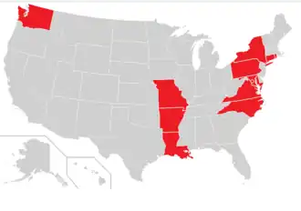 However, some U.S. Lodges do practice the Ancient and Accepted Scottish Rite blue degrees, and, in recent years, they have grown in number.[43][44][11][45][46][47] There are 11 lodges in New Orleans (Historically all located in the district 16 they recently approved a new one district 20),[48][49][50] 16 in New York City[51] as well as Washington DC, Hawaii[52] and California,[53] that work in the Scottish Rite Craft degrees.