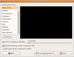 A screensaver (or screen saver) is software that controls a monitor of the host computer with the intent of preventing screen burn-in for a screen susceptible to it. Generally, a screensaver starts controlling a monitor when the computer has been idle for a designated period of time and fills the screen either with black (all pixels off) or with changing graphics that tend to prevent each pixel from being on for a long time. Although monitors were commonly constructed with screen technology that was susceptible to burn-in (CRT and plasma), most modern monitors are LCD which are not. Notably, another modern technology, OLED, is susceptible.[1]
