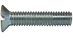 - A screw with a flat head that requires countersinking so that it can be driven with the head flush with the surface it is screwed into. The angle of the screw is measured as the aperture of the cone.