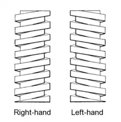 - In combination with right-hand threads in turnbuckles and clamping studs[3]