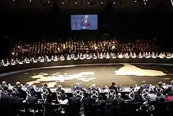 Piñera was sworn in as the 34th President of the Republic of Chile on 11 March 2010, in a ceremony held in a plenary session of the National Congress in Valparaíso. In the same ceremony, Piñera's Cabinet ministers were sworn in. The ceremony was also marked by a 6.9 Mw earthquake and subsequent aftershocks that upset the invitees.[80]