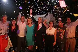 Piñera celebrates alongside his wife and family after winning the 2009–10 presidential election