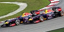 Vettel started the first two races of the 2013 season on pole position, and at the Malaysian Grand Prix, he lapped over 2.5 seconds faster than teammate Webber in qualifying during a wet session.[88] He won the race, though not without controversy. Vettel ignored the team orders and passed Webber for the lead. Webber was furious after the race and said that Vettel "will have protection as usual and that's the way it goes".[89] Team principal Horner, although unhappy with Vettel's actions, pointed out that Webber had defied team orders on several previous occasions. He acknowledged that the already fragile relationship between the two drivers had further broken down as a result of the incident.[90] Vettel claimed that he was not sorry for winning and that if the situation presented itself again, he would have passed Webber despite the order, adding that he felt Webber did not deserve to win the race.[91]