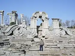 With the Qing army devastated, the Xianfeng Emperor fled the capital and left behind his brother, Prince Gong, to take charge of peace negotiations. Xianfeng first fled to the Chengde Summer Palace and then to Rehe Province.[37] Anglo-French troops began looting the Summer Palace[38] (Yiheyuan) and Old Summer Palace (Yuanmingyuan) immediately (as they were full of valuable artwork).[39]