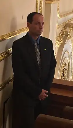 Bodyguard protects Members of Parliament during public visits by visitors in the Chamber of Deputies of the Czech Republic in 2015.Private guard escort on a merchant ship providing security services against pirates.