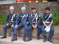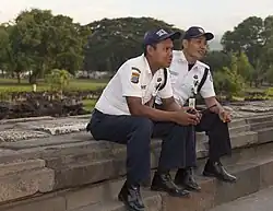 Mall parking lot security guards (Satpam) in Jakarta, IndonesiaA security guard protecting the entrance to an apartment building, and managing the parking of cars in Haikou, Hainan Province, China