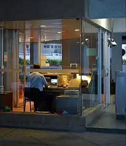 Watchman on duty at a residential block in Hong Kong