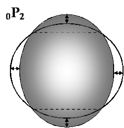 Some examples of spheroidal oscillations are the "breathing" mode 0S0, which involves an expansion and contraction of the whole Earth, and has a period of about 20 minutes; and the "rugby" mode 0S2, which involves expansions along two alternating directions, and has a period of about 54 minutes. The mode 0S1 does not exist because it would require a change in the center of gravity, which would require an external force.[3]