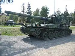 Self-propelled artillery (also called locomotive artillery) is artillery equipped with its own propulsion system to move toward its firing position. Within the terminology are the self-propelled gun, self-propelled howitzer, self-propelled mortar, and self-propelled rocket artillery. They are high-mobility vehicles, usually based on continuous tracks carrying either a large field gun, howitzer, mortar, or some form of rocket/missile launcher. They are usually used for long-range indirect bombardment support on the battlefield.