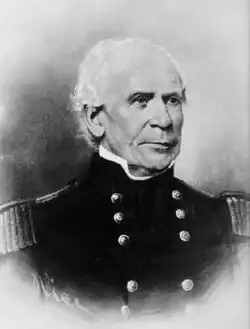 The Second Seminole War (1835–1842) began as a result of the United States unilaterally voiding the Treaty of Moultrie Creek and demanding that all Seminoles relocate to Indian Territory in present-day Oklahoma under the Indian Removal Act (1830). After several ultimatums and the departure of a few Seminole clans per the Treaty of Payne's Landing (1832), hostilities commenced in December 1835 with the Dade battle and continued for the next several years with a series of engagements throughout the peninsula and extending to the Florida Keys. Though the Seminole fighters were at a tactical and numerical disadvantage, Seminole military leaders effectively used guerrilla warfare to frustrate United States military forces, which eventually numbered over 30,000 regulars, militiamen and volunteers.[14] General Thomas Sidney Jesup was sent to Florida to take command of the campaign in 1836. Instead of futilely pursuing parties of Seminole fighters through the territory as previous commanders had done, Jesup changed tactics and engaged in finding, capturing or destroying Seminole homes, livestock, farms, and related supplies, thus starving them out; a strategy which would be duplicated by General W. T. Sherman in his march to the sea during the American Civil War. Jesup also authorized the controversial abduction of Seminole leaders Osceola and Micanopy by luring them under a false flag of truce.[15] General Jesup clearly violated the rules of war, and spent 21 years defending himself over it, "Viewed from the distance of more than a century, it hardly seems worthwhile to try to grace the capture with any other label than treachery."[16] By the early 1840s, many Seminoles had been killed, and many more were forced by impending starvation to surrender and be removed to Indian Territory. Though there was no official peace treaty, several hundred Seminoles remained in central and southern Florida after active conflict wound down.[2]