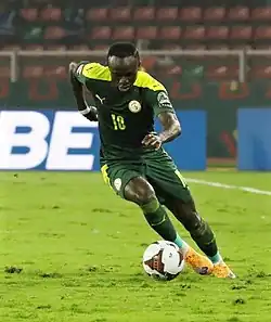 Deprived of many players due to COVID-19, Senegal participated in the 2021 Africa Cup of Nations, postponed to 2022 because of the pandemic; they beat Zimbabwe in their first match 1–0 and drew their next two games, enough to finish first in their group.[18] In the round of 16, Senegal faced Cape Verde. Mané recorded a shot that hit the post in the first minute. Patrick Andrade was sent off in the 21st minute, after intervention of the video assistant referee. Despite their dominance, the first half ended without a single shot on target; Mané opened the scoring a few minutes into the second half, following a corner.