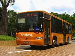 Sentosa Beach Shuttle is a free-to-ride tram that serves Palawan Beach, Siloso Beach, and Tanjong Beach, using four vehicles including 2 Volvo B12BLEAs, in which the second carriage is an open-top and another one with green and blue liveries. The Volvo B12BLEAs were manufactured by ComfortDelGro Engineering bodywork, which has since been taken out of service. The connection is at Beach Station Bus Terminal, beside Beach Station.