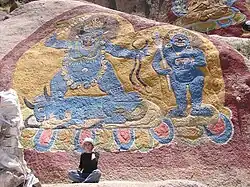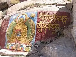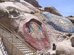 The Tsongkhapa and other deities painted on rock on the approach to hermitage