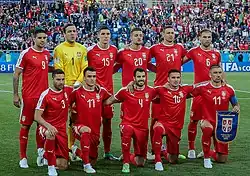 | Serbia's starting XI under coach Radomir Antić in their 1–0 win over Germany at the 2010 FIFA World Cup.[56] |