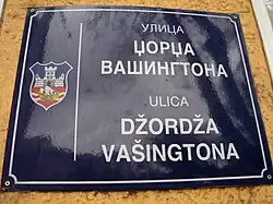Street sign in Belgrade, using Cyrillic and Latin scripts