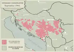 The genocidal policies of the Ustaše regime provoked a massive and sustained Serbian insurection.[67] In June 1941, Serbs in eastern Herzegovina staged an armed rebellion against the authorities of the Independent State of Croatia, which was suppressed after two weeks. Persecution of Serbs resulted in the prevalence of resistance movements in Serb-populated areas.[68] Another rebellion, led by the Partisans, began on July 27, 1941.[67] Some of these insurgents in turn committed atrocities against the Muslim and Croat population.[69]
