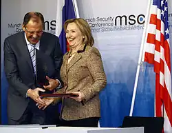 US politicians have been much more critical in their appraisal of Lavrov, seeing him as emblematic of President Putin's resurgent violent foreign policies. Then US Secretary of State Hillary Clinton found that Lavrov treated her poorly during negotiations, like a "jerk."[19] Several Obama administration officials interviewed for a profile on Lavrov described him as an “anti-diplomat” with “nothing redeemable” about his “uncharismatic, offensive, uncompromising, cruel, unlikeable, brusque, caddish” character.[20]