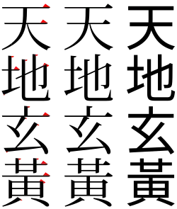- The analogs of serifs, known in Japanese as 鱗 uroko, literally "fish scales"