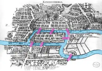 The Seven Bridges of Königsberg is a historically notable problem in mathematics. Its negative resolution by Leonhard Euler, in 1736,[1] laid the foundations of graph theory and foreshadowed the idea of topology.[2]