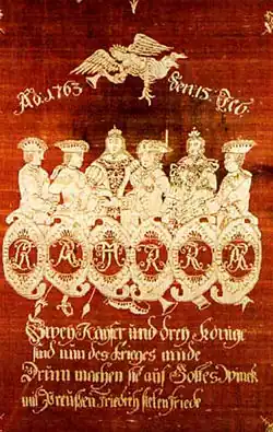 In the War of the Austrian Succession,[19] which lasted from 1740 to 1748, the Prussian King Frederick II had seized the prosperous province of Silesia from Austria. Empress Maria Theresa of Austria had signed the Treaty of Aix-la-Chapelle in 1748 in order to gain time to rebuild her military forces and to forge new alliances.