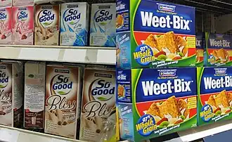 The pioneers of the Adventist Church had much to do with the common acceptance of breakfast cereals and meat alternatives into the Western diet. John Harvey Kellogg started the meat alternative movement by creating Protose at Battle Creek Sanitarium, which was later sold through mail order by Battle Creek Food Company. The Battle Creek Food Company manufactured mostly meat alternatives for the guests at Battle Creek Sanitarium.[58][59] Will Keith Kellogg and John Harvey Kellogg invented corn flakes at Battle Creek Sanitarium, by putting stale wheat berry between rollers and baking it.[60] It was later served to the sanitarium guests. The Kellogg brothers also invented bran flakes and Rice Krispies.[60] Later in 1906, Will Keith Kellogg founded the Battle Creek Toasted Corn Flake Company in Battle Creek, Michigan.[58] Special Foods founded in Worthington, Ohio, in 1939, manufactured nut meat substitutes. After World War II, it changed its name to Worthington Foods. Worthington Foods introduced two canned meat alternatives in 1949: Soyloin Steaks, and Meatless Wieners.[59] In 1960, it bought the rights to manufacture and market Battle Creek Foods Company products after John Harvey Kellogg died. In 1975, it released its frozen, soy-based meatless foods nationwide.[58] In both Australia and New Zealand, Sanitarium Health and Wellbeing Company owned by the church manufactures brands such as So Good, Up & Go, and Weet-Bix.[61]