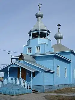 Fifteen objects in Severodvinsk are protected as cultural heritage monuments[24] In particular, the Nyonokotsky Pogost in the village of Nyonoksa is protected as an architecture monument on the federal level. This is one of the few surviving triple wooden church ensembles, consisting of two churches (a bigger, not heated, church used in the summer, a smaller, heated church used in the winter) and a bell-tower. Nyonoksa was also notable for salt production.