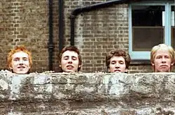 ![]() The Sex Pistols performing in Amsterdam in January 1977. Left to right: Paul Cook (behind the drums), Glen Matlock, Johnny Rotten, and Steve Jones. | |