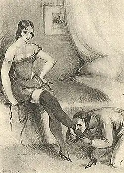 A submissive man worshipping a woman's foot, from Dresseuses d'Hommes (1931)