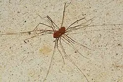 Aquatic arthropods may breed by external fertilization, as for example horseshoe crabs do,[34] or by internal fertilization, where the ova remain in the female's body and the sperm must somehow be inserted. All known terrestrial arthropods use internal fertilization. Opiliones (harvestmen), millipedes, and some crustaceans use modified appendages such as gonopods or penises to transfer the sperm directly to the female. However, most male terrestrial arthropods produce spermatophores, waterproof packets of sperm, which the females take into their bodies. A few such species rely on females to find spermatophores that have already been deposited on the ground, but in most cases males only deposit spermatophores when complex courtship rituals look likely to be successful.[30]