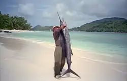 In 1976, Seychelles gained independence from the United Kingdom as a republic. It has since become a member of the Commonwealth.[25] In the 1970s Seychelles was "the place to be seen, a playground for film stars and the international jet set".[26] In 1977, a coup d'état by France-Albert René ousted the first president of the republic, James Mancham.[27] René discouraged over-dependence on tourism and declared that he wanted "to keep Seychelles for the Seychellois".[26]