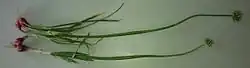 The tubular green leaves of the plant can also be eaten and are very similar to the leaves of spring onions and chives.