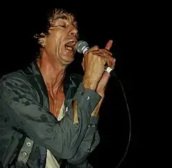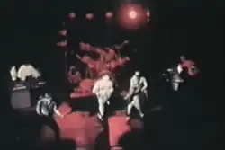 The 12 November 1976 issue of NME noted that Sham 69 was rehearsing in 1976, although only Pursey would remain from this early line-up twelve months later.[4] Original guitarists Johnny Goodfornothing (a.k.a. John Goode) and Neil Harris were replaced by Dave Parsons, and drummer Billy Bostik (a.k.a. Andy Nightingale) by Mark Cain.[5] Albie Slider (a.k.a. Albie Maskell) remained for the group's first single in 1977[6] before being replaced by Dave Tregunna. The Pursey/Parsons/Tregunna/Cain line up then remained stable until 1979,[4] when Ricky Goldstein took over on drums for the band's fourth album.