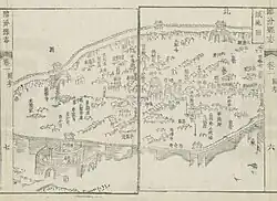 A city map of Linfen, Shanxi, drawn during the Kangxi Emperor reign of the Qing dynasty.