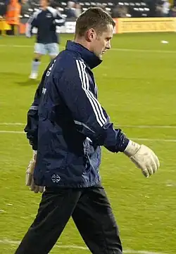 In June 2018, Given was appointed goalkeeping coach at Derby County under new manager Frank Lampard.[154] He retained his position when Phillip Cocu was appointed manager in July 2019.[155] In November 2020, Given was part of an interim coaching quartet alongside Wayne Rooney, Liam Rosenior and Justin Walker after Cocu was sacked earlier that month. After two matches as an interim quartet, Rooney would go on to take sole charge.[156] On 15 January 2021, Rooney was appointed as the club's permanent manager and Given moved to the position of first-team coach.[157] Given left his role at Derby at the end of the season because the club's financial problems meant they could not afford to renew it.[158][159]
