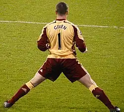 Séamus John James Given (born 20 April 1976) is an Irish former professional footballer who played as a goalkeeper. Widely regarded as one of the greatest Irish goalkeepers of all time and – in his prime – one of the best Premier League goalkeepers, he is the second-most capped Republic of Ireland player, with 134 caps (a tally exceeded only by Robbie Keane).