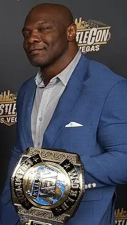 Shelton James Benjamin (born July 9, 1975) is an American professional wrestler and former amateur wrestler. As of October 2024, he is signed to All Elite Wrestling (AEW), where he is a member of The Hurt Syndicate and is formerly one-half of the AEW World Tag Team Champions with stablemate Bobby Lashley. Benjamin is best known for his tenures with WWE, first from 2000 to 2010, and then again from 2017 to 2023. He is also known for his appearances in Ring of Honor (ROH), and in Japan with New Japan Pro-Wrestling (NJPW) and Pro Wrestling Noah under the ring name Shelton X Benjamin.[6]