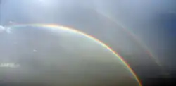 Shen gave reasoning (earlier proposed by Sun Sikong, 1015–1076) that rainbows were formed by the shadow of the sun in rain, occurring when the sun would shine upon it.[97][98][99] Paul Dong writes that Shen's explanation of the rainbow as a phenomenon of atmospheric refraction "is basically in accord with modern scientific principles."[100] In Europe, Roger Bacon (1214–1294) was the first to suggest that the colors of the rainbow were caused by the reflection and refraction of sunlight through rain drops.[71]