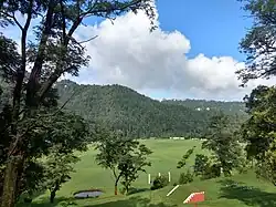 The green belt in the Shimla planning area is spread over 414 hectares (1,020 acres).[24] The main forests in and around the city are of Pine, Deodar, Oak and Rhododendron.[40] Environmental degradation due to the increasing number of tourists every year without the infrastructure to support them has resulted in Shimla losing its popular appeal as an ecotourism spot.[41] Another rising concern in the region are the frequent number of landslides that often take place after heavy rains.[37][42]