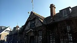 Pre-independence structures still dot Shimla; buildings such as the former Viceregal Lodge, Assembly Chamber, Auckland House, Christ Church, Gorton Castle, Shimla Town Hall and the Gaiety Theatre are reminders of British rule in India.[32][33] The original Peterhoff, another Viceregal residence, burnt down in 1981. British Shimla extended about 2.5 kilometres (1+1⁄2 mi) along the ridge between Jakhoo Hill and Prospect Hill. The central spine was the Mall Road, which ran along the length of the Ridge, with a Mall Extension southwards, closed to all carriages except those of the viceroy and his wife.