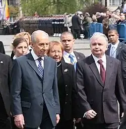Shimon Peres (/ʃiːˌmoʊn ˈpɛrɛs, -ɛz/ shee-MOHN PERR-ess, -ez;[1][2][3] Hebrew: שמעון פרס [ʃiˌmon ˈpeʁes] ⓘ; born Szymon Perski, Polish: [ˈʂɨmɔn ˈpɛrskʲi]; 2 August 1923 – 28 September 2016) was an Israeli politician and statesman who served as the prime minister of Israel from 1984 to 1986 and from 1995 to 1996 and as the president of Israel from 2007 to 2014. He was a member of twelve cabinets and represented five political parties in a political career spanning 70 years.[4] Peres was elected to the Knesset in November 1959 and except for three months out of office in early 2006, served as a member of the Knesset continuously until he was elected president in 2007. Serving in the Knesset for 48 years (with the first uninterrupted stretch lasting more than 46 years), Peres is the longest serving member in the Knesset's history. At the time of his retirement from politics in 2014, he was the world's oldest head of state and was considered the last link to Israel's founding generation,[5] as well as the last Prime Minister to make aliyah rather than being born on territory that would become Israel.