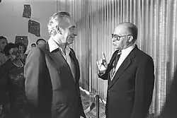 On 7 April 1977, Prime Minister Rabin announced that, in the wake of a foreign currency scandal involving his wife, he would be stepping down prior to the 1977 Knesset election.[64] Peres made himself a candidate to replace him as the new Labor Party leader. Initially, Foreign Minister Yigal Allon also made himself a candidate. However, Allon and Peres reached an agreement that Peres would appoint Allon to any ministerial position that Allon preferred in exchange from his withdrawal of his candidacy. Following Allon's withdrawal, the Labor Party leadership announced on 10 April 1977 that he had chosen to endorse Peres as the party's new leader. On 11 April 1977, the 815-member Central Committee of the party elected Peres by acclamation as the party's new leader.[61][65][66]