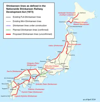 The following lines are under construction. These lines except Chūō Shinkansen, called Seibi Shinkansen or planned Shinkansen, are the Shinkansen projects designated in the Basic Plan of the Shinkansen Railway decided by the government.