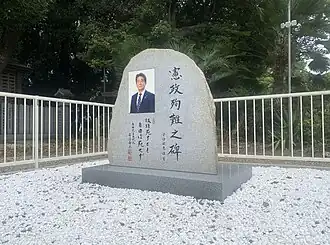 Memorial monument for Shinzo Abe at Osaka Gokoku Shrine in Osaka Japan